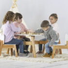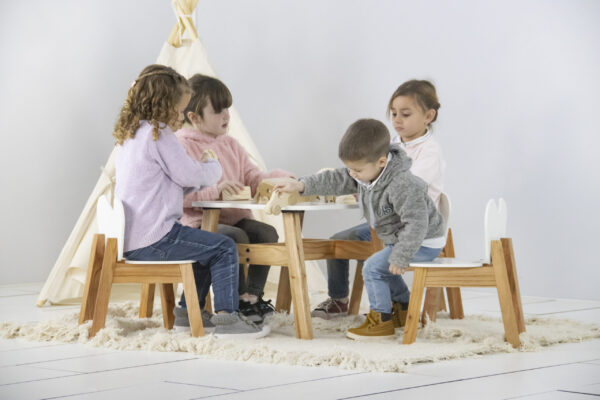 La nueva mesa Montessori es ideal para sumar al espacio de juego de los niños de casa. Está fabricada con patas de paraíso con lustre natural y tapa en mdf laqueado color blanco. Recomendamos armar el conjunto con 2 o 4 sillas Montessori.