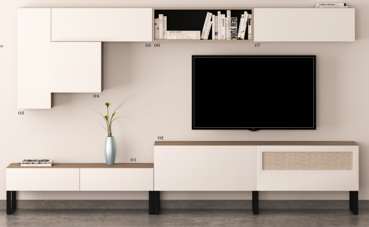 una colección de módulos de salón, living y comedor configurables, con un singular acabado de calidad y una notable personalidad basada en las líneas puras y la sencillez.